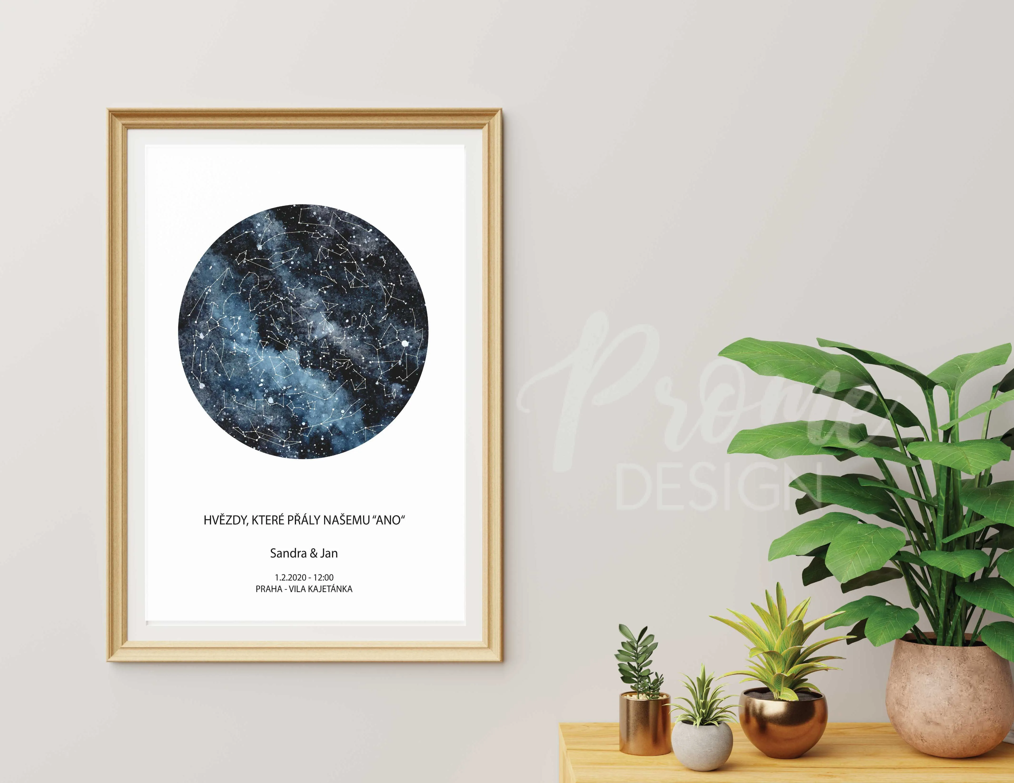 Životní události jako první setkání s partnerem, pusa, svatba, či narození vašeho děťátka si zaslouží originální zvěčnění a 100% splníte s tou univerzální mapou hvězdné oblohy. My Vám rádi k Vašim osudovým momentům vytvoříme na míru.
