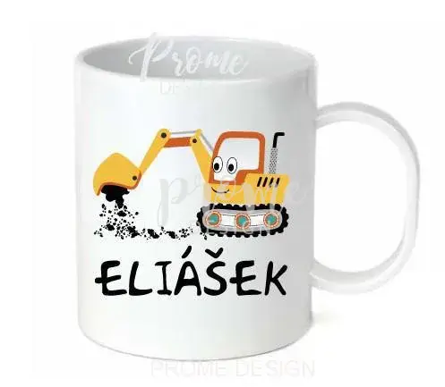 Klasický hrneček s motivem bagru a textem či jménem na Vaše přání.