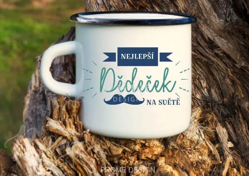 Plechový hrneček s nápisem "nejlepší dědeček na světě" se skvěle hodí na ranní kávu/čaj nebo výlet do přírody.