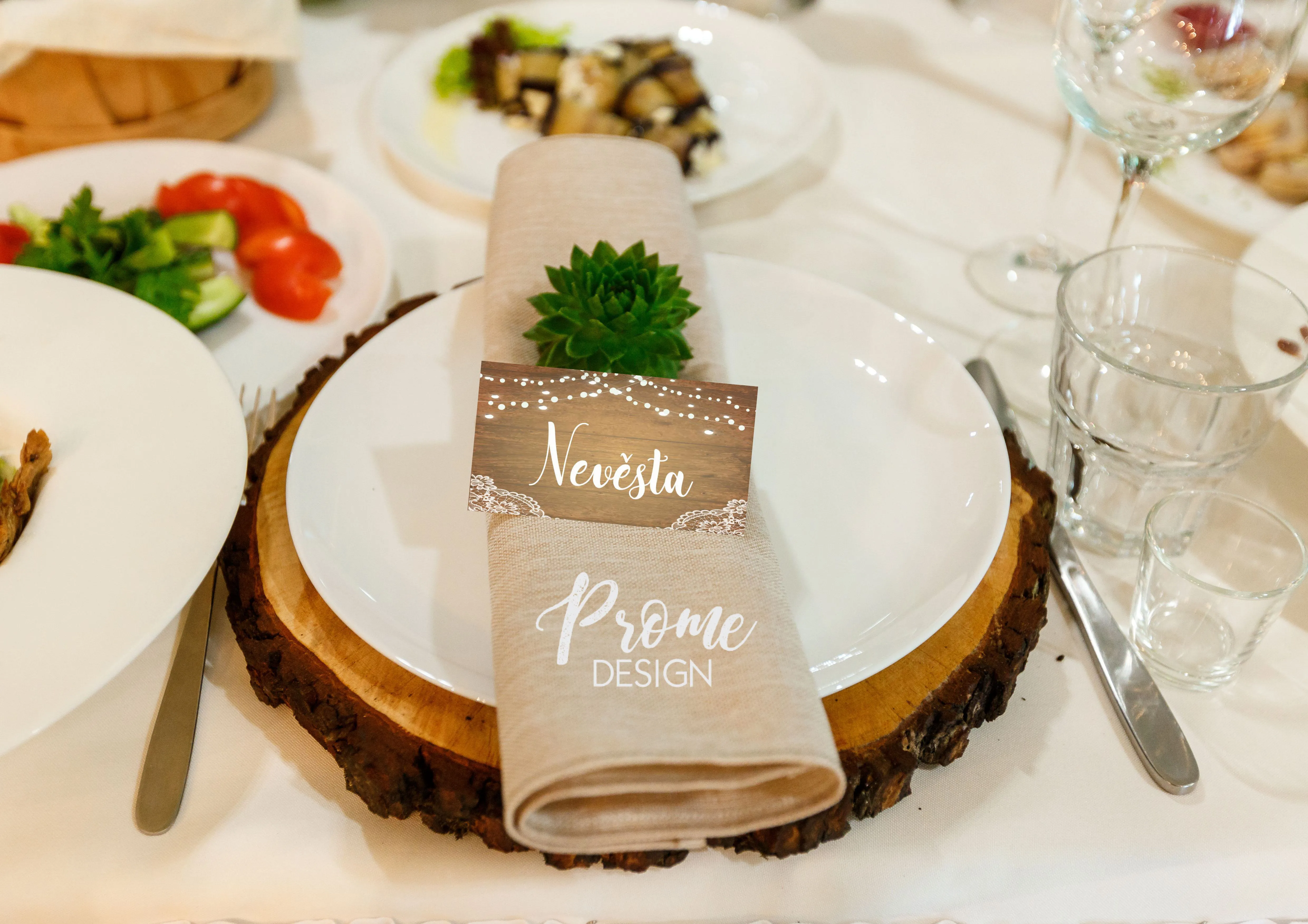 Zasedací svatební pořádek má svá pravidla. Jmenovky určují, kde / kdo má své místo u svatební tabule a ulehčují orientaci hostům.