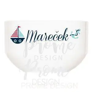 Přinášíme Vám klasickou keramickou misku v bílé barvě s motivem mariny a vlastním jménem či textem.