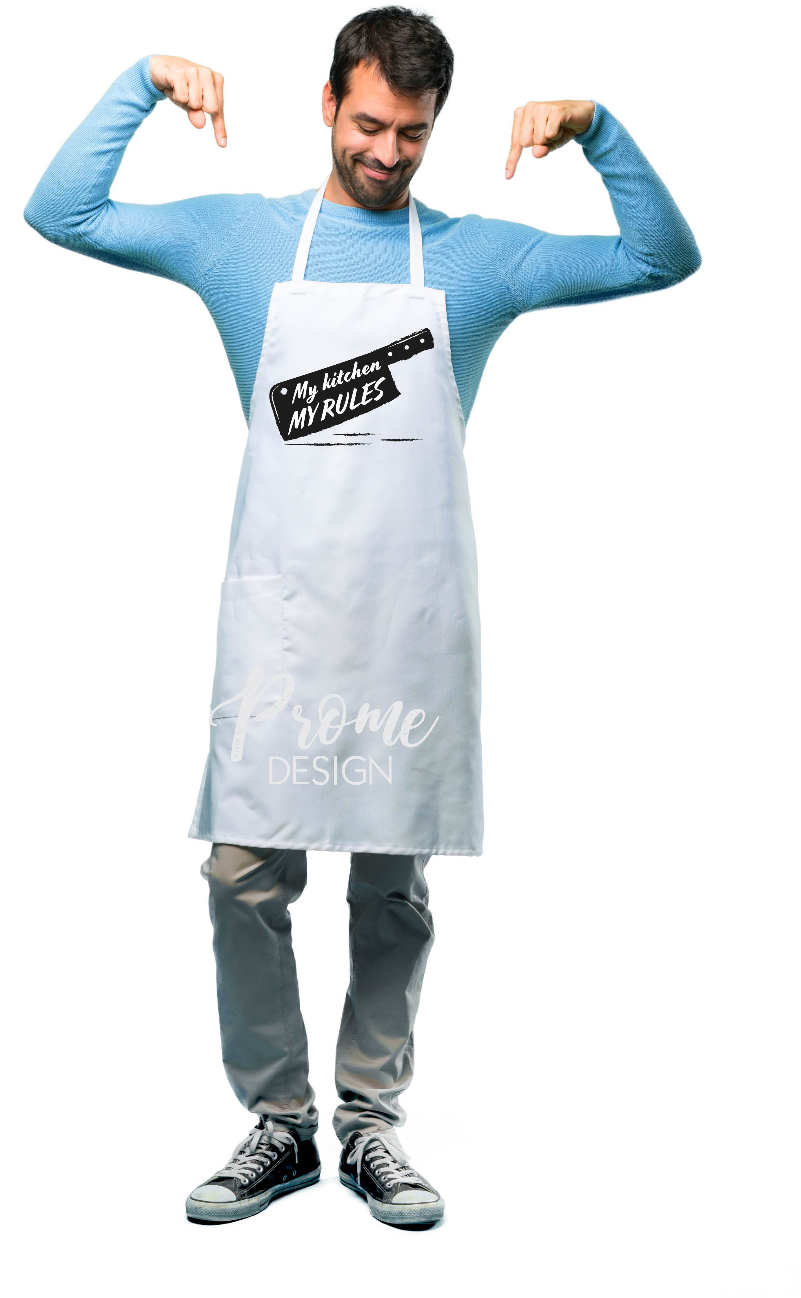 Tato zástěra potěší každého správného kuchaře či kuchařku díky jasnému a vystiznému nápisu: "my kitchen my rules".