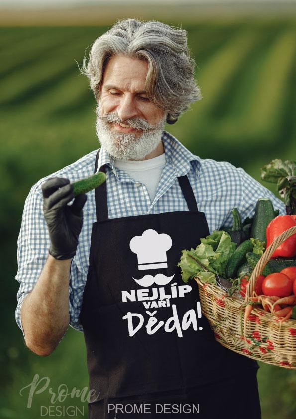 Originální zástěra pro může a hlavně dědu. Potěště dědečka touto kuchyňskou zástěrou s textem: Nejlíp vaří děda.