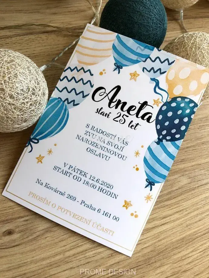 - Možnost přizpůsobení: Text pozvánky lze přizpůsobit vašim požadavkům, včetně jména oslavence, data a času oslavy a adresy.