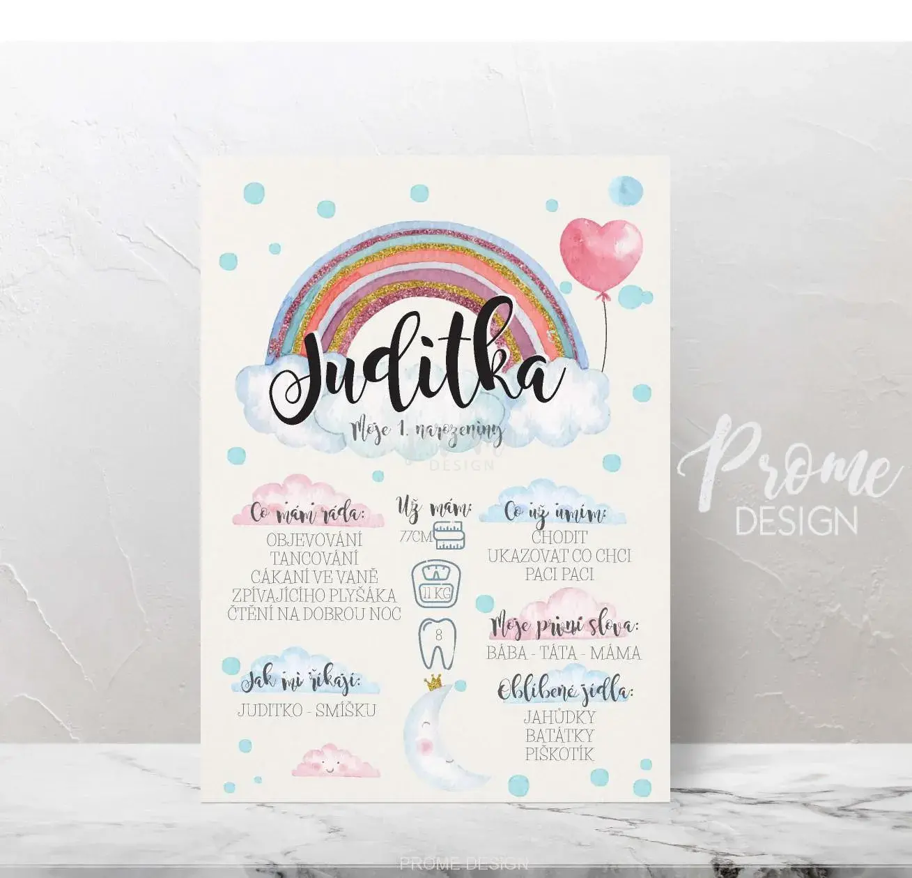 Na trhnu jsme od roku 2018Krása v detailech, osobní přístup a poctivá práce – to je PromeDesign. Každý kousek vypráví váš příběh – tiskneme s láskou od roku 2018.- Kompletní specifikace