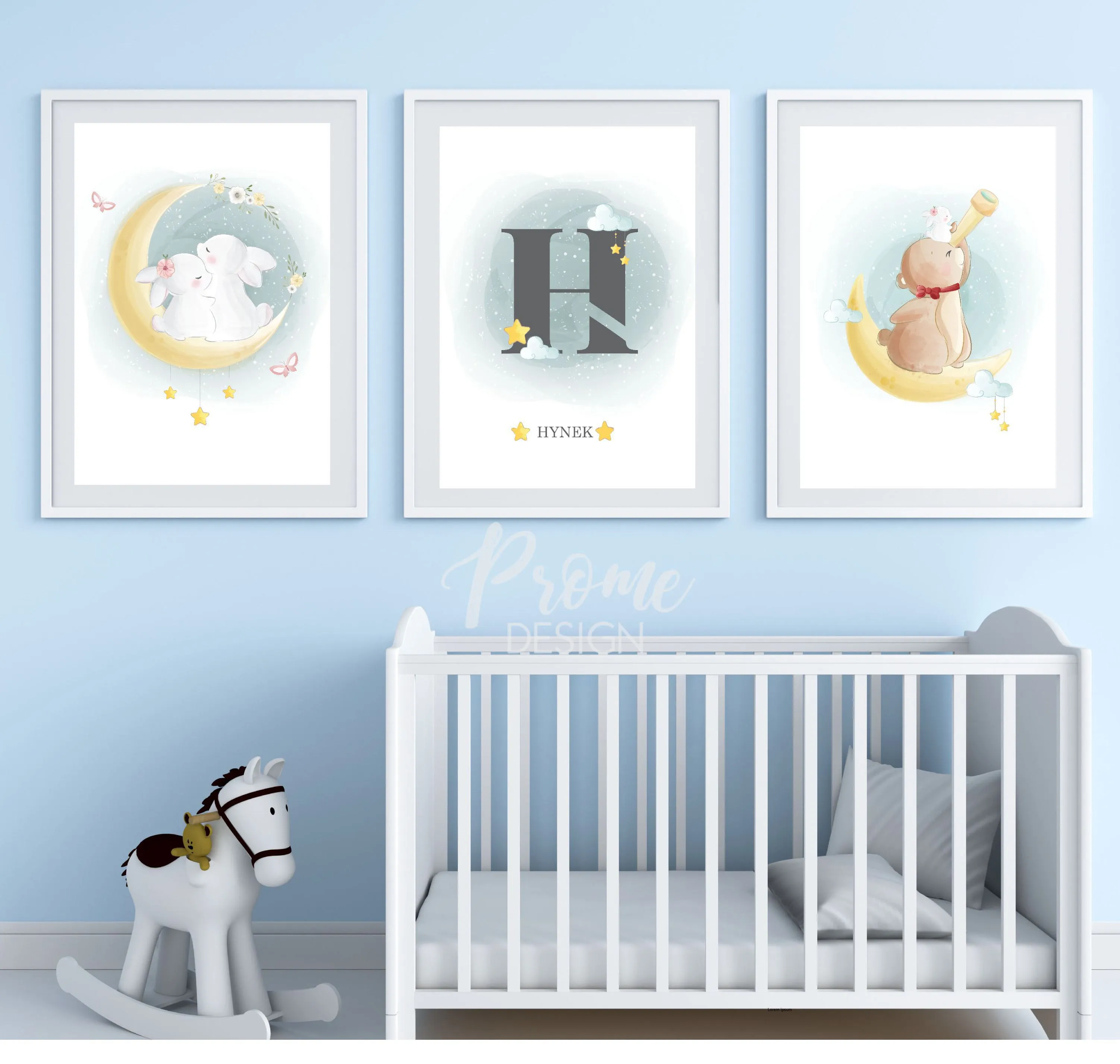 Tato sada obsahuje: 2x plakát se zvířátkem a 1x plakát se začatečním písmenem a jménem na Vaše přání.