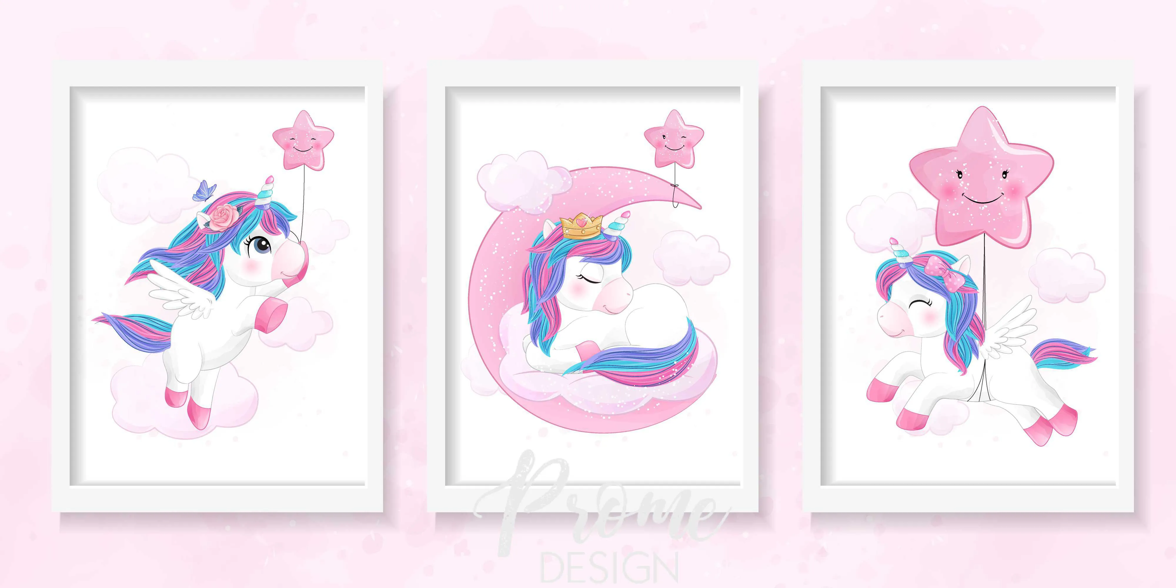 Orginální plakáty v jednotném stylu. Krásná a stylová dekorace, kterou si zamiluje každá malá milovnice jednorožců.
