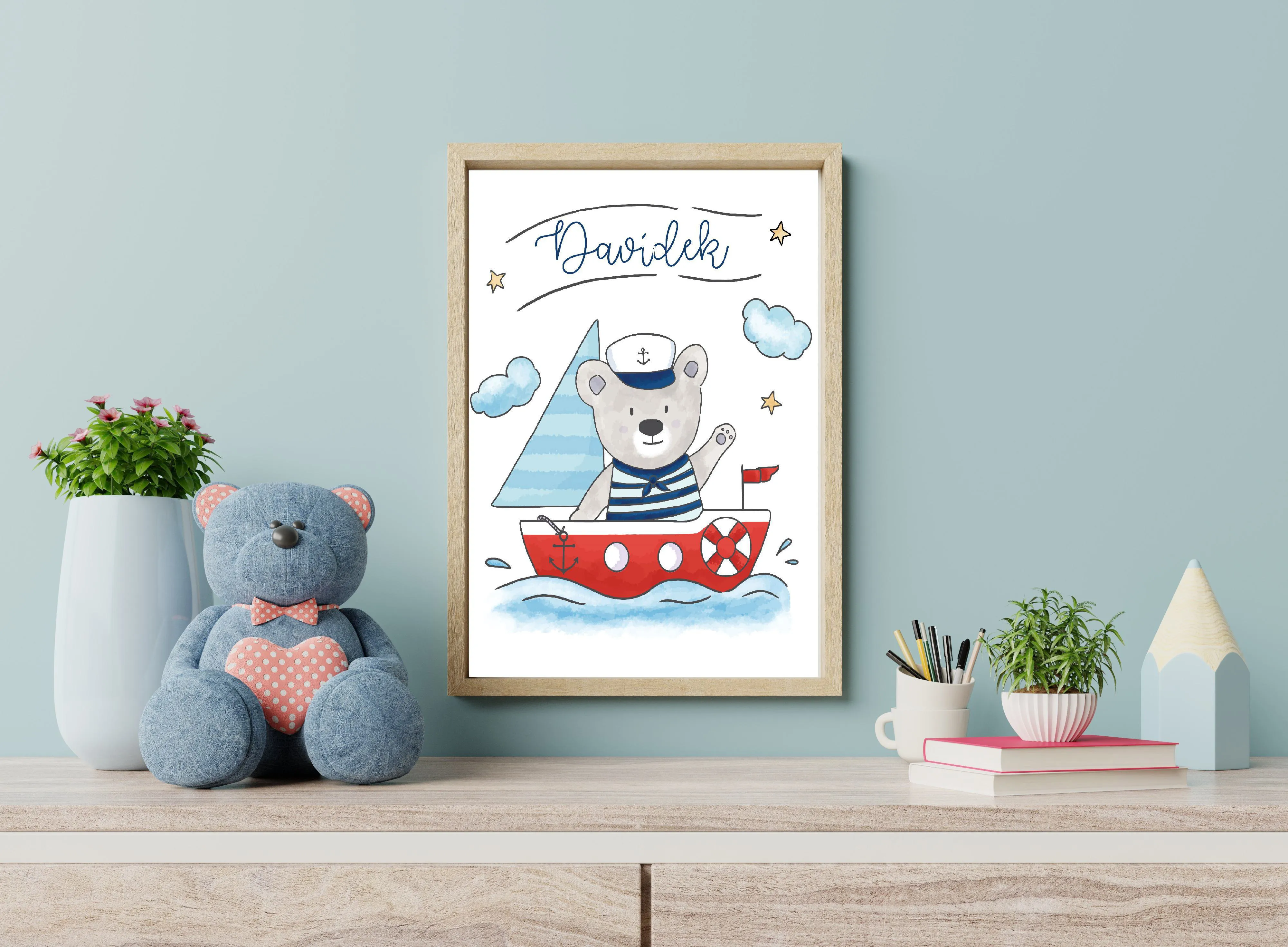 ORIGINÁLNÍ PERSONALIZOVANÝ PLAKÁT - 4503 Medvídek kapitán se jménem