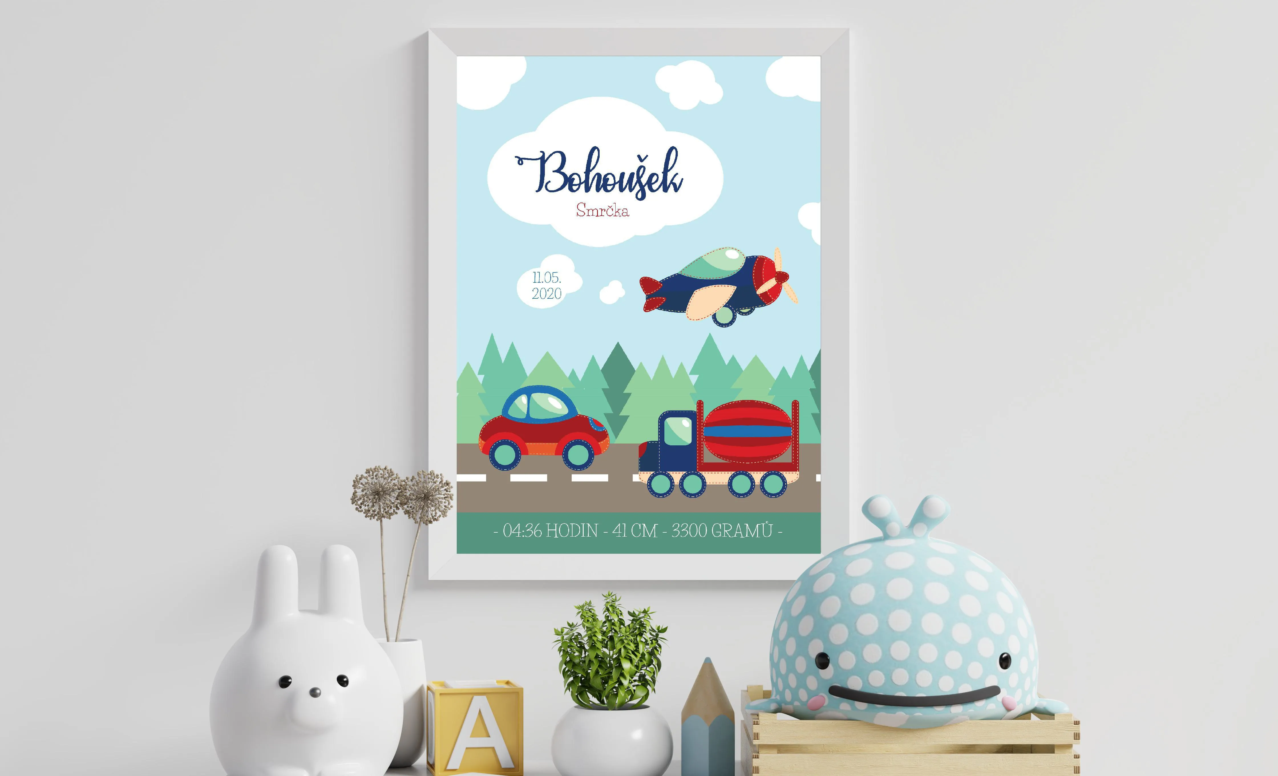 Plakát s údaji o narození - Bohoušek
