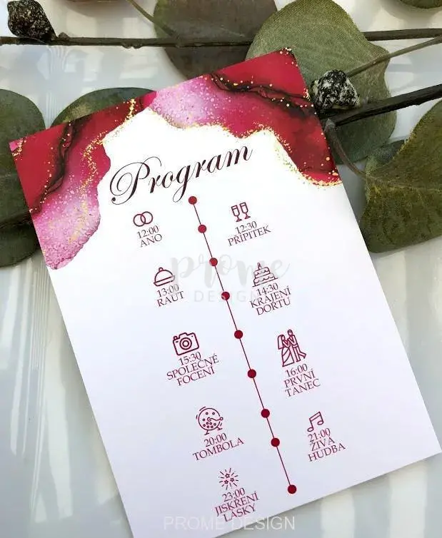Použijte naš originální svatební program na své svatbě a usnadněte tak hostům časovou orientaci při Vašem dni "d".