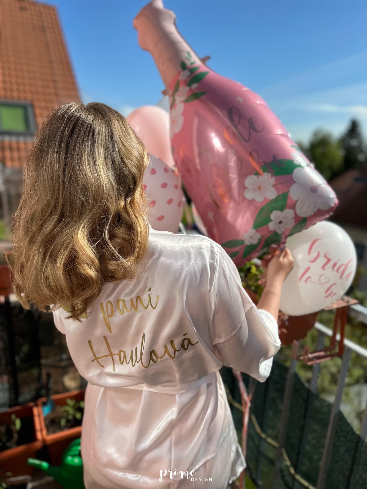 Díky možnosti personalizace vlastním textem vytvoříte jedinečný kousek přesně podle vašich představ. Župan může nést nápis jako Nevěsta, Tým nevěsty, Svědkyně nebo Družička doplněný o jméno či datum svatby. Tento personalizovaný detail z něj dělá nejen praktický kousek, ale i krásnou památku na váš velký den.