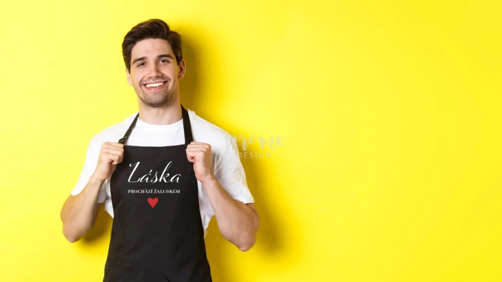 Na tuto zástěru jde vepsat jméno nebo text na přání. Váš požadavek na změnu textu stačí uvést do poznámky u objednávky.
