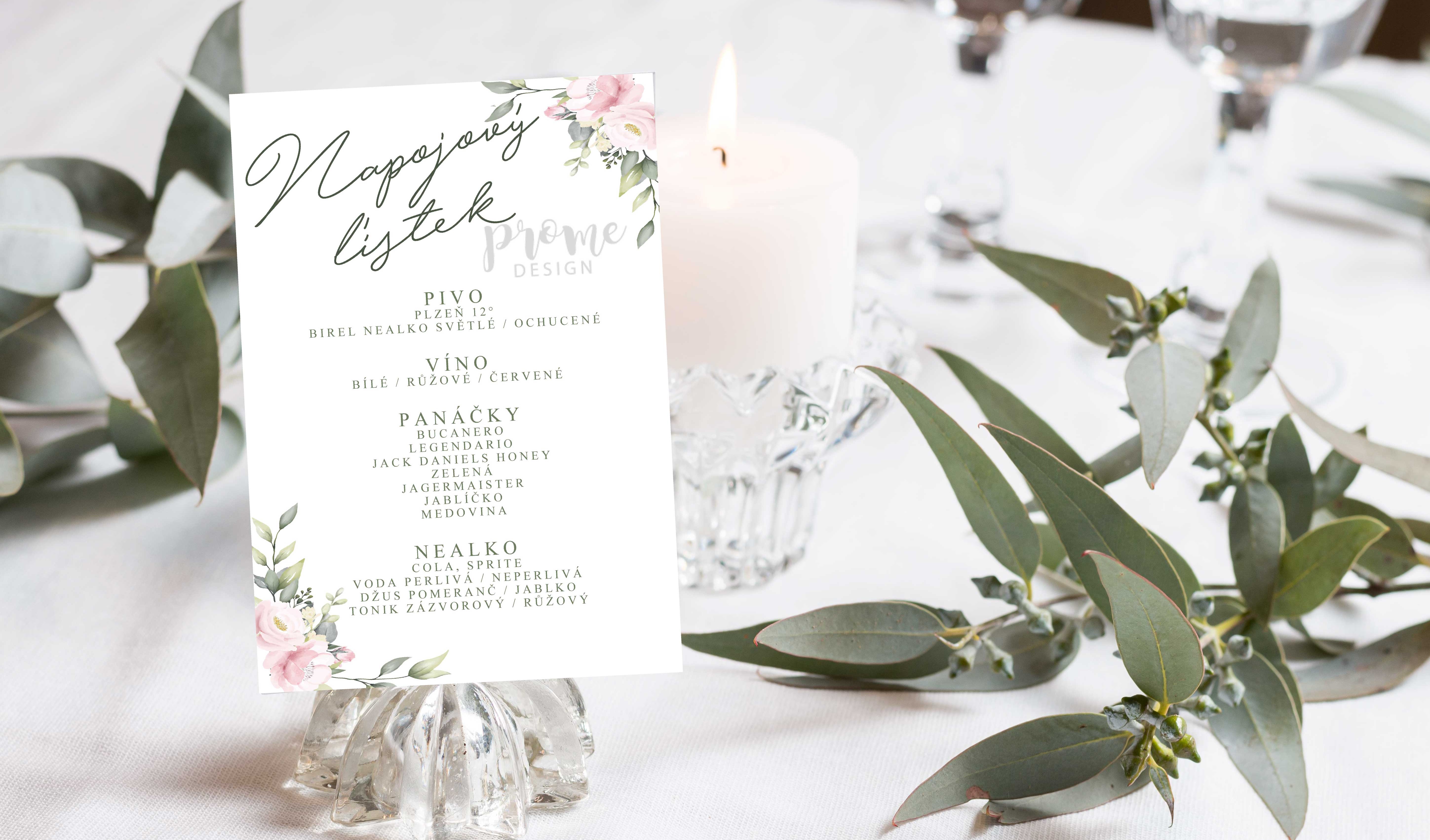 Napojový lístek je nedílná součast svatebních tiskovin. Ušetří Vám nejednu otázku, co se bude podavát, či jaký je výbrej nápojů.